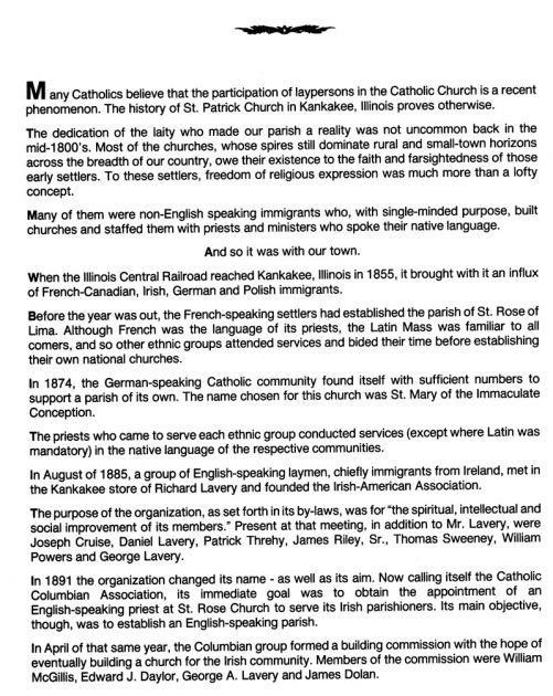 St. Patrick Church History